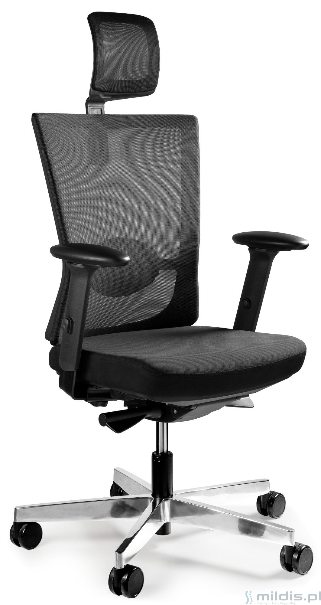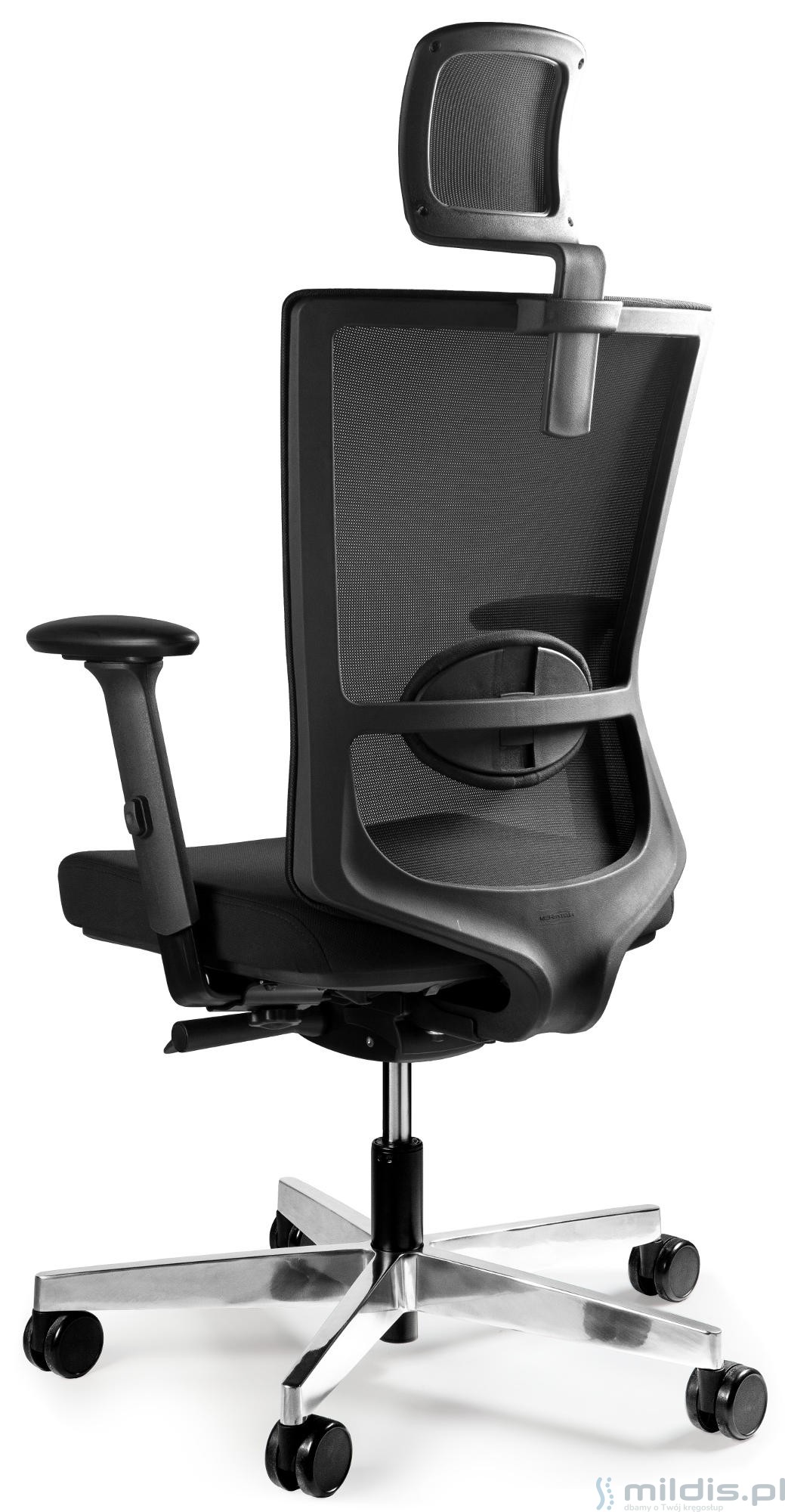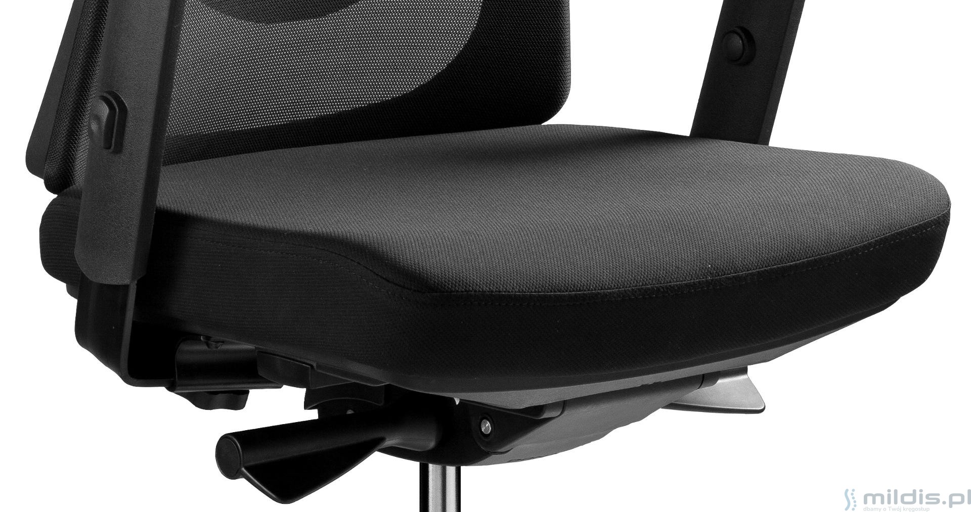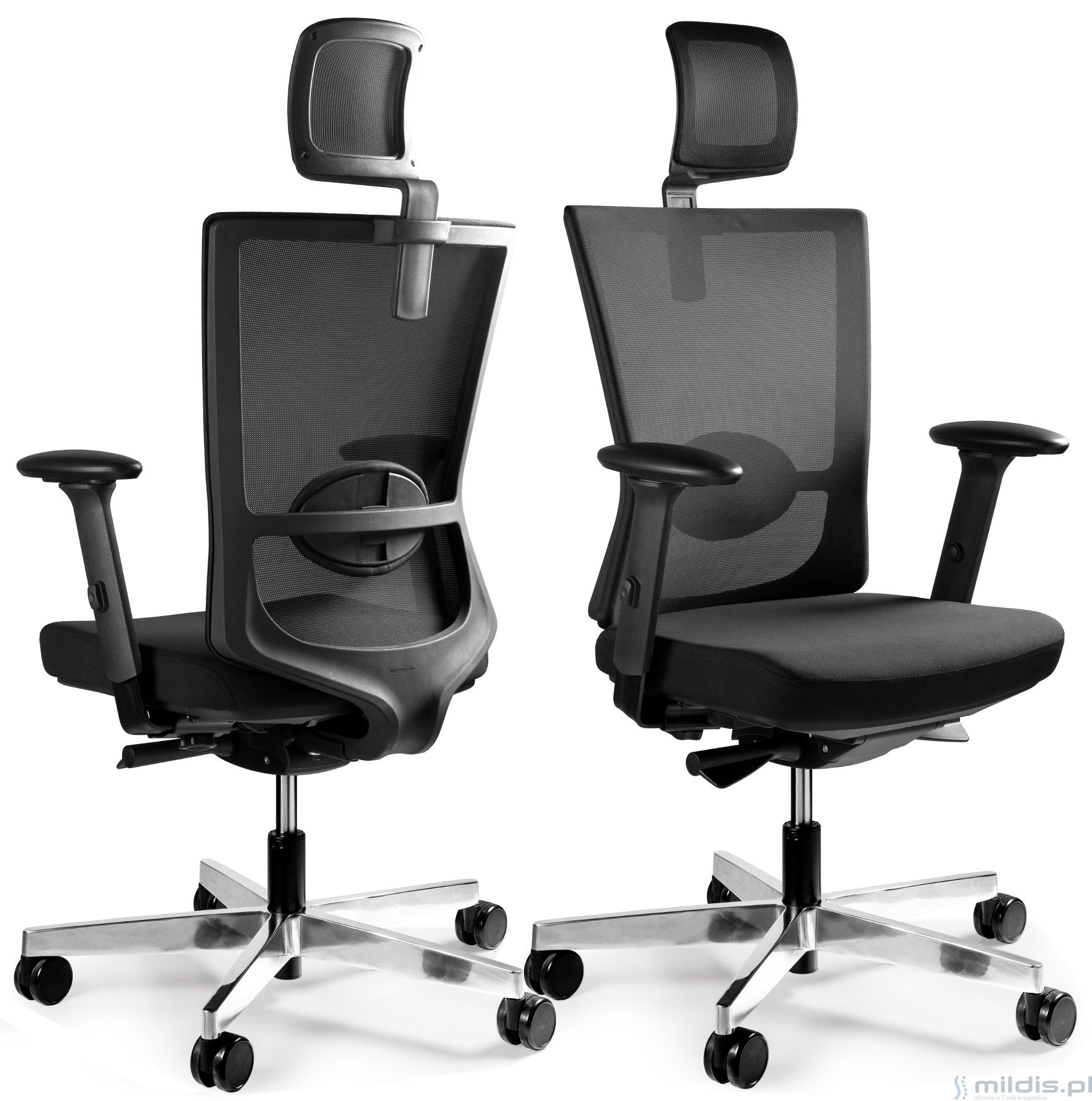 - Oparcie i zagłówek zawsze z czarnej siatki.