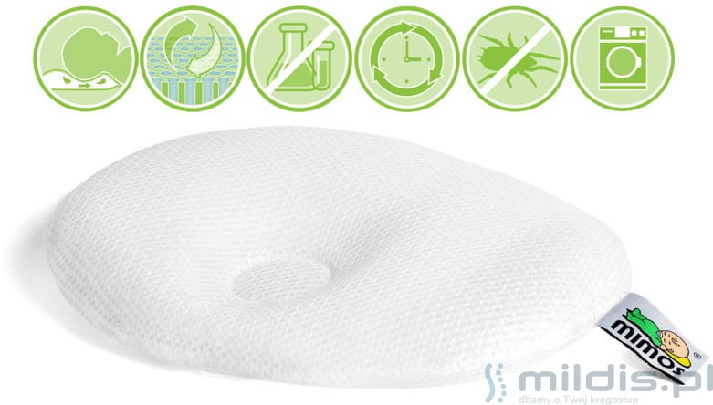 - Poduszki Mimos mają bardzo dobre właściwości wentylacyjne. Większość ich objętości stanowi powietrze znajdujące się pomiędzy elementami struktury poduszki. Mimo wszystko dzieci w ich pierwszym okresie życia mają tendencję do większej potliwości niż np. dorośli. Ta poduszka pomoże w lepszej wentylacji główki, jednak nie zapobiega temu całkowicie. Pocenie się to proces niezależny od samej poduszki.