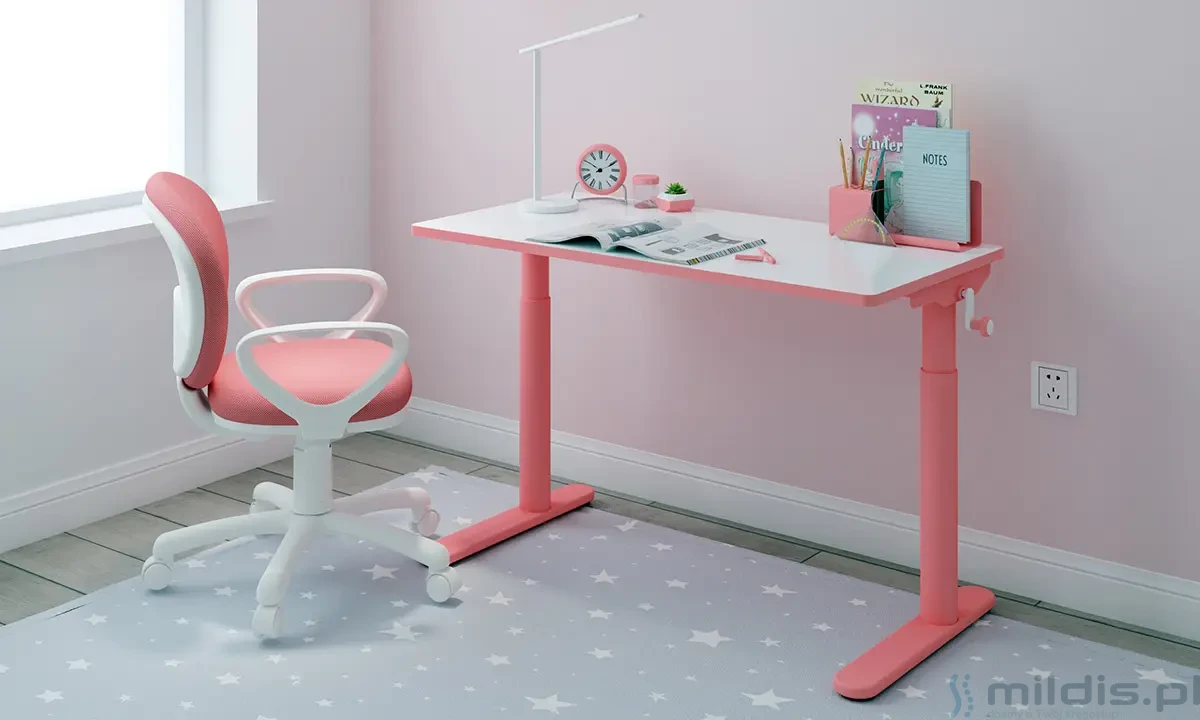 Różowe biurko dla dziecka regulowane manualnie - Spacetronik XD 80x60 cm