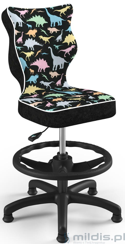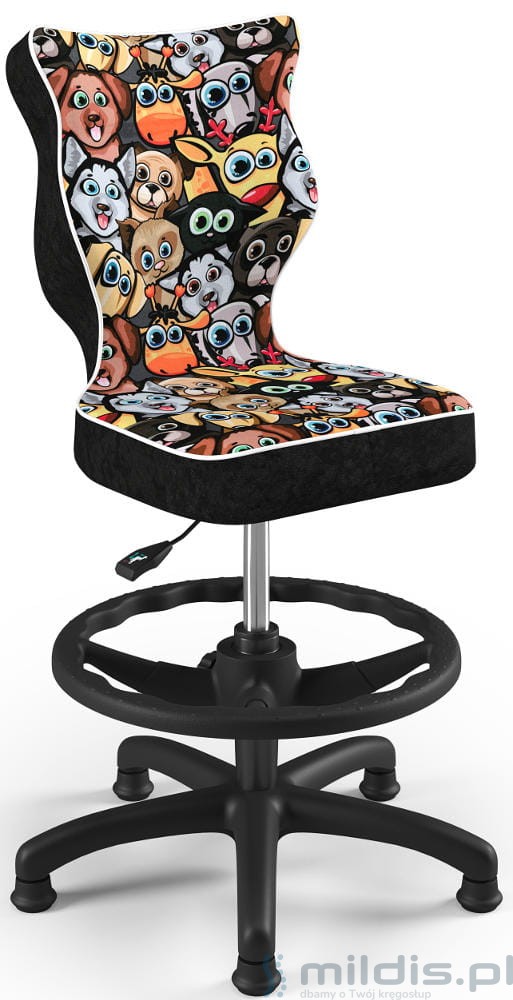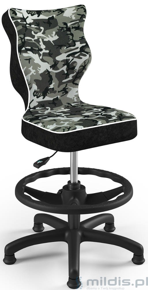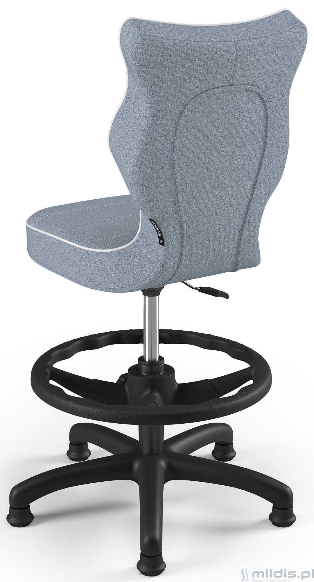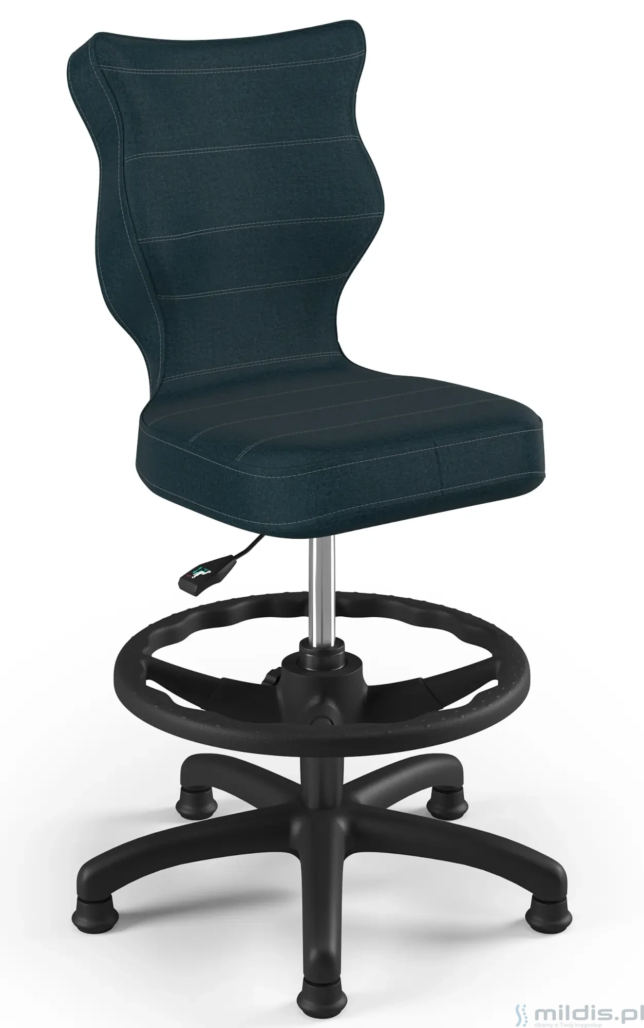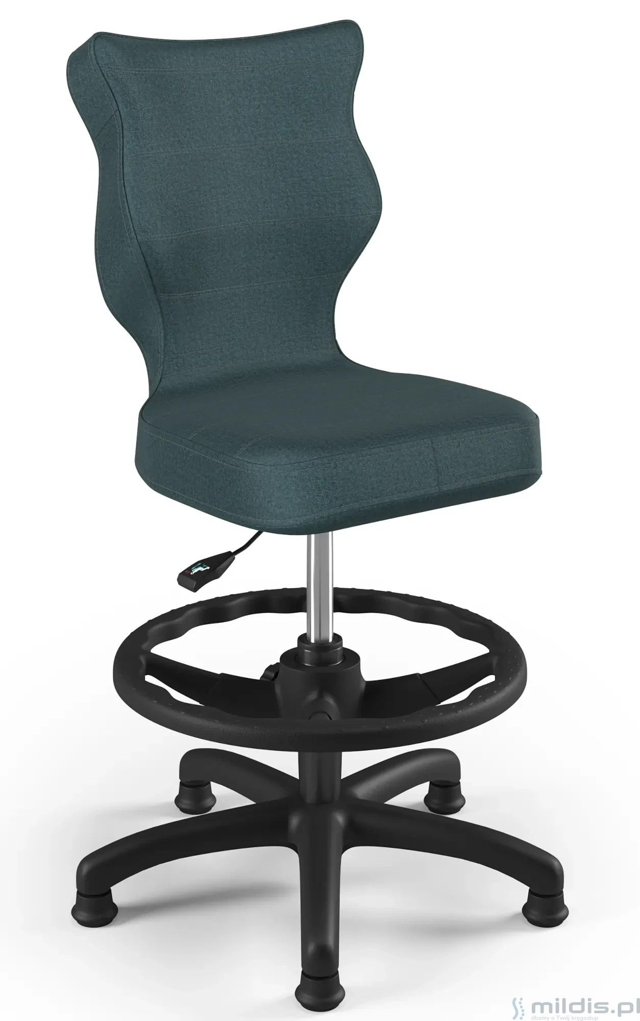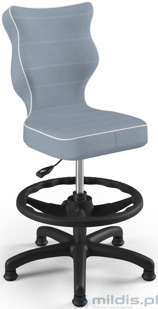Krzesło do biurka Entelo Petit Black posiada specjalną konstrukcję - z długim siłownikiem podnoszącym siedzisko. Dla zachowania prawidłowej, zdrowej postawy - oprócz ergonomicznego oparcia - posiada również regulowaną podstawkę pod stopy. Dzięki temu nawet podczas siedzenia przy wysokim biurku starsze dzieci mogą swobodnie oprzeć stopy.