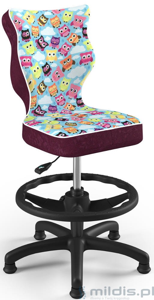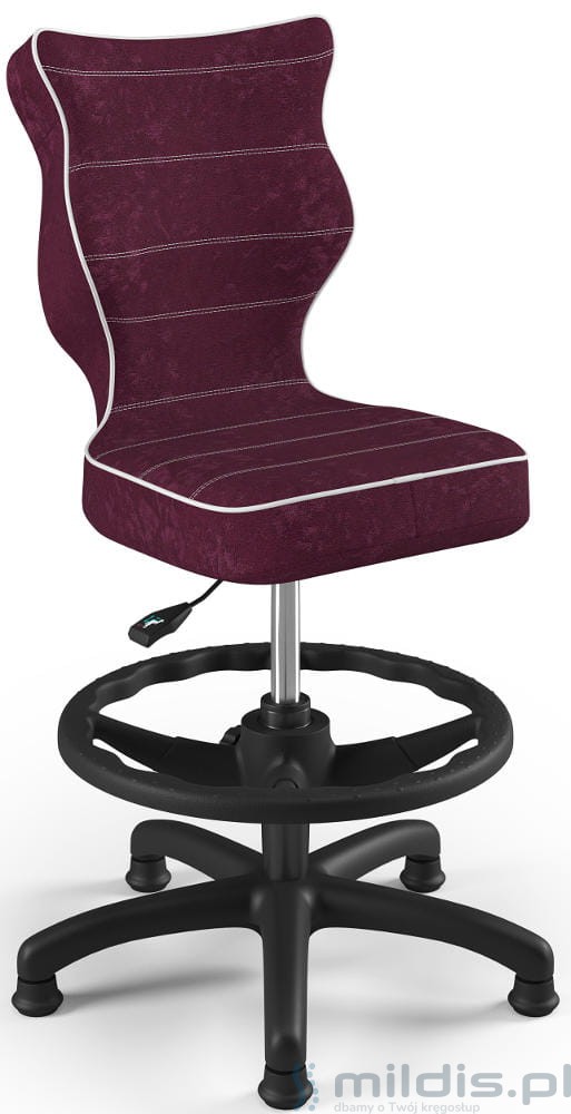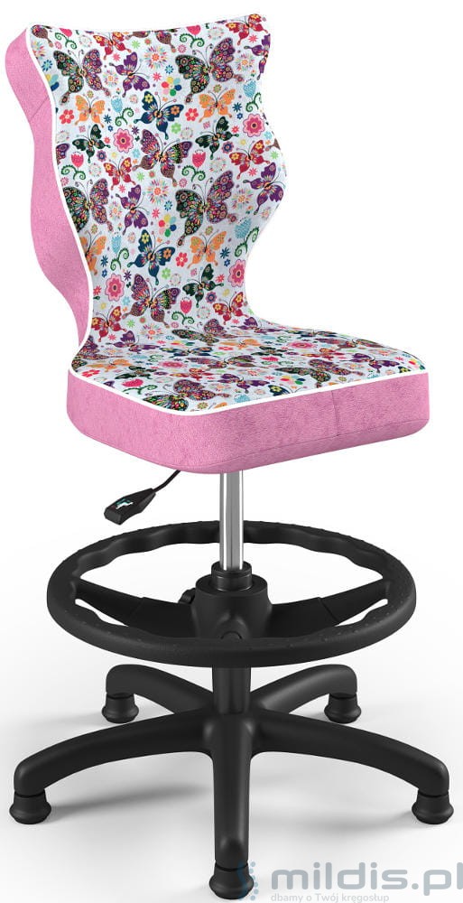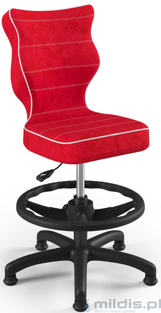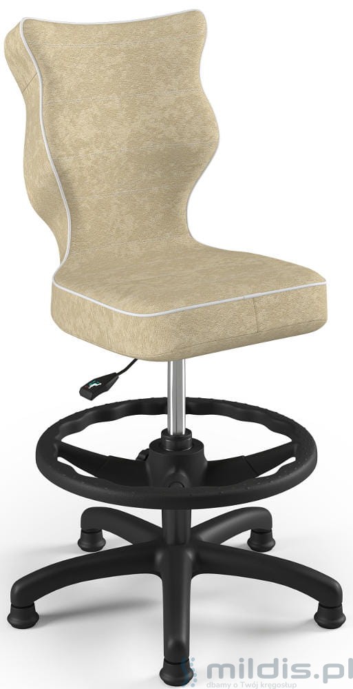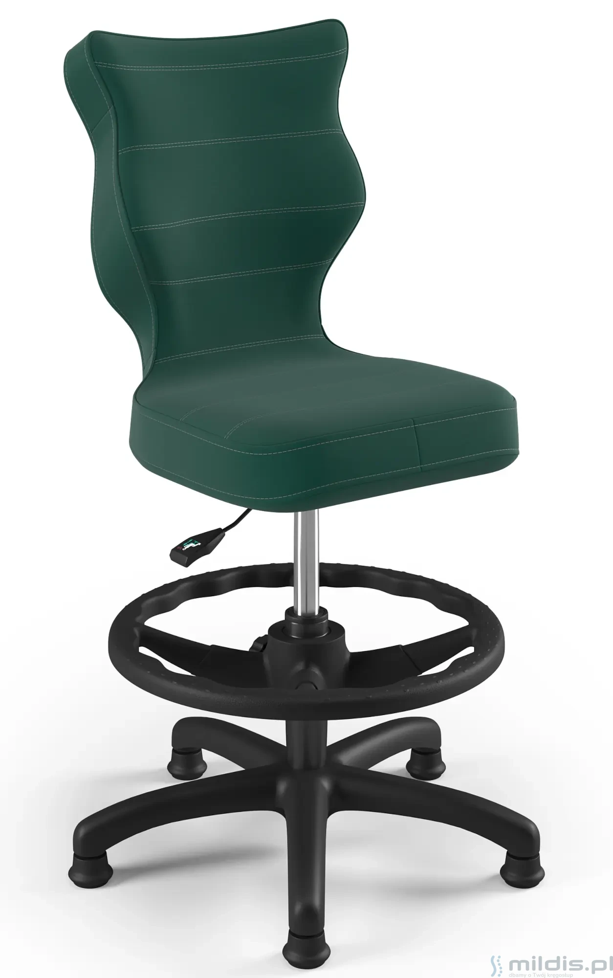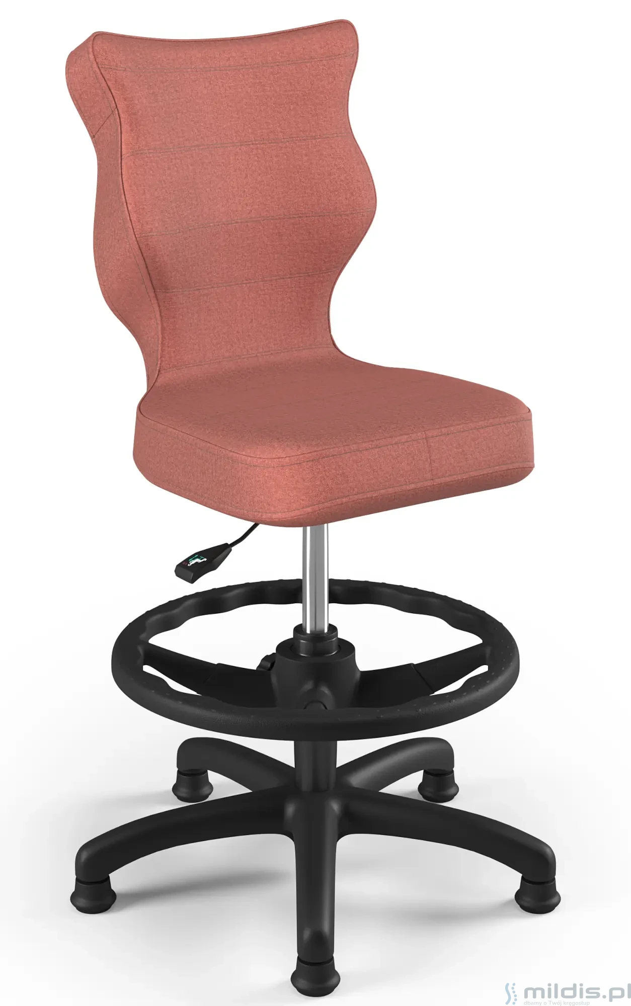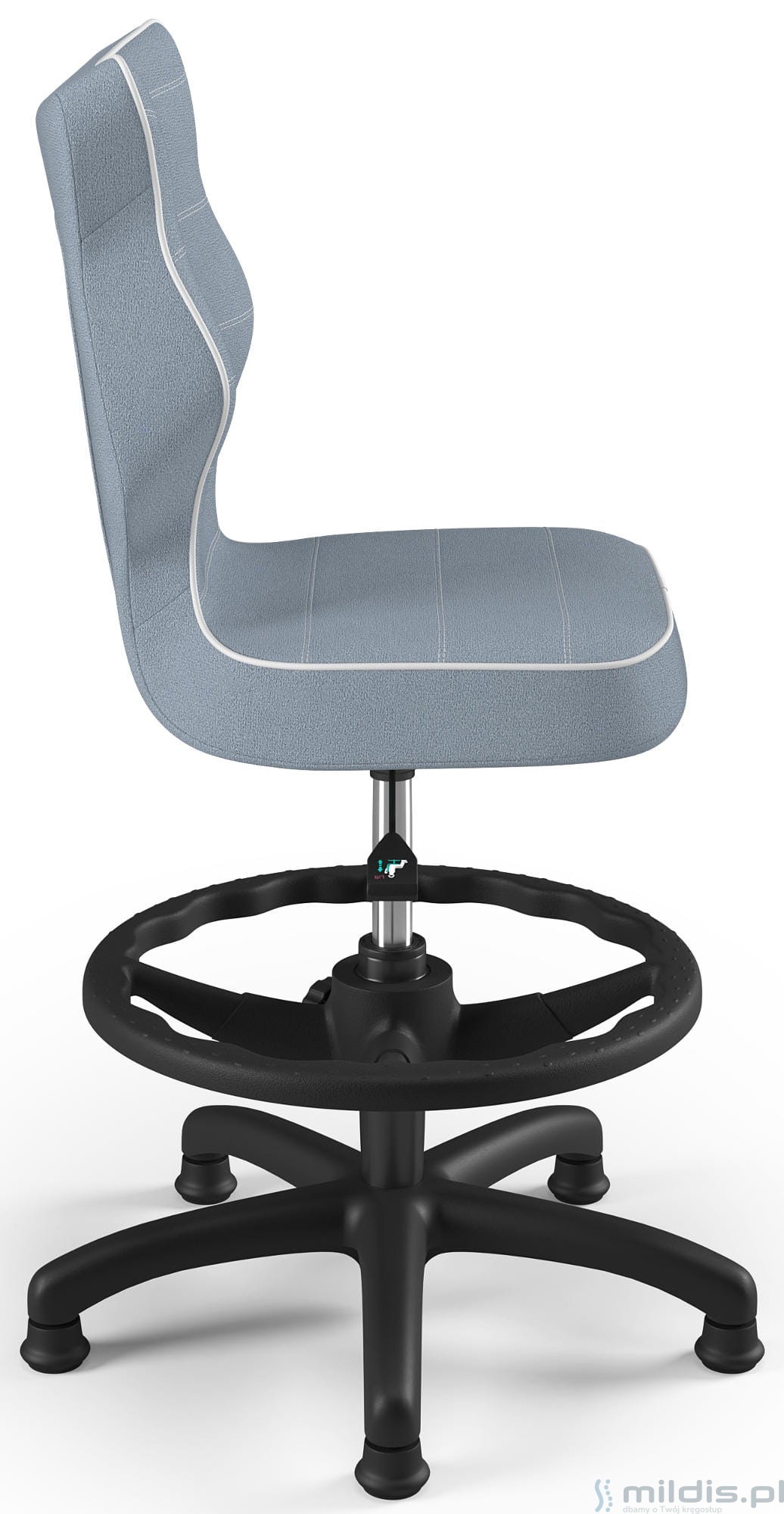 Krzesło do biurka Entelo Petit Black posiada specjalną konstrukcję - z długim siłownikiem podnoszącym siedzisko. Dla zachowania prawidłowej, zdrowej postawy - oprócz ergonomicznego oparcia - posiada również regulowaną podstawkę pod stopy. Dzięki temu nawet podczas siedzenia przy wysokim biurku starsze dzieci mogą swobodnie oprzeć stopy.