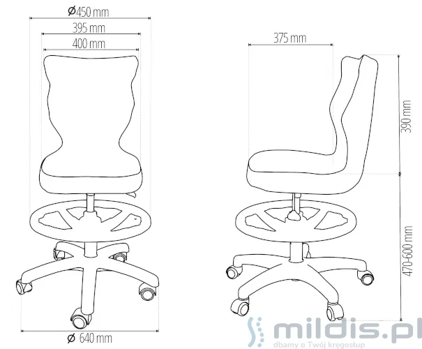 Krzesło obrotowe dla nastolatków z podnóżkiem Entelo Petit rozmiar 5 - czarny stelaż