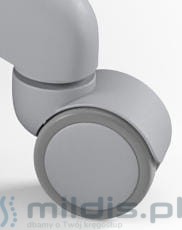 Posiada bardzo estetyczną, szarą konstrukcję dolną (kółka, nogi, podnośnik siedziska).