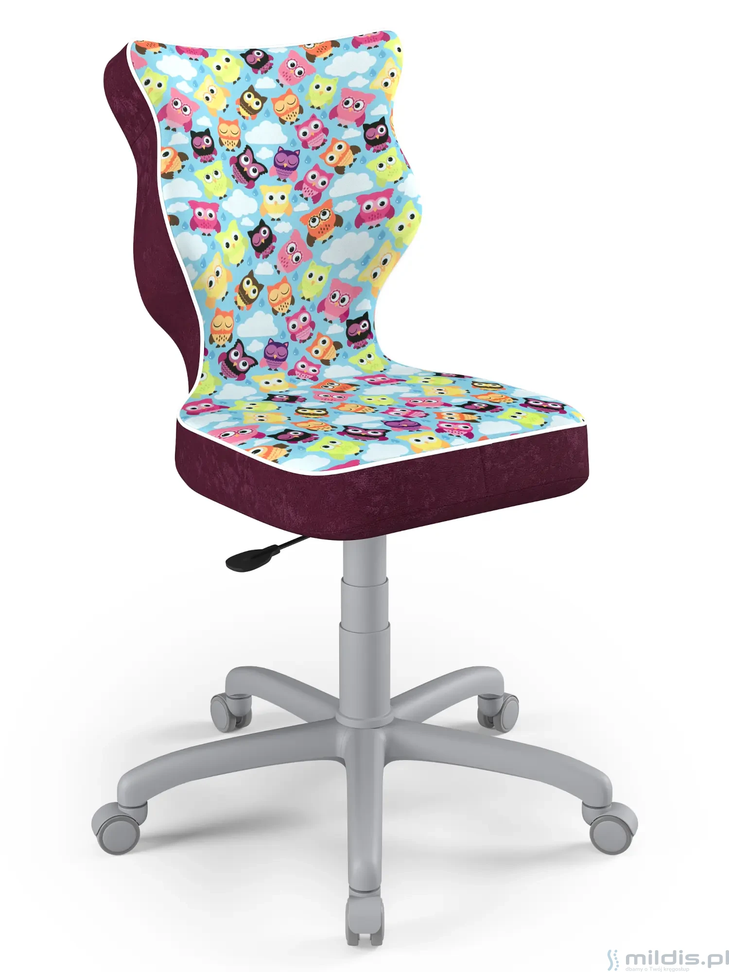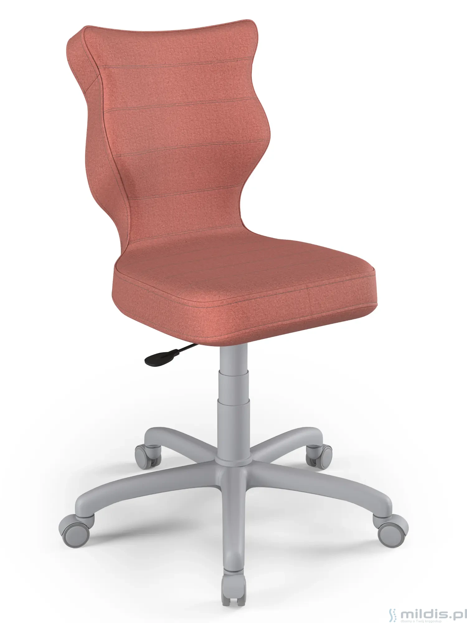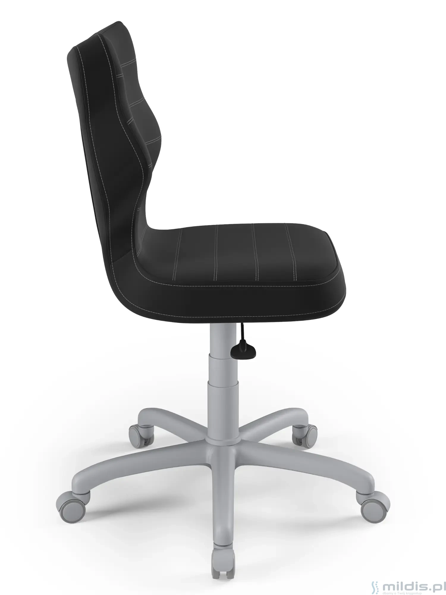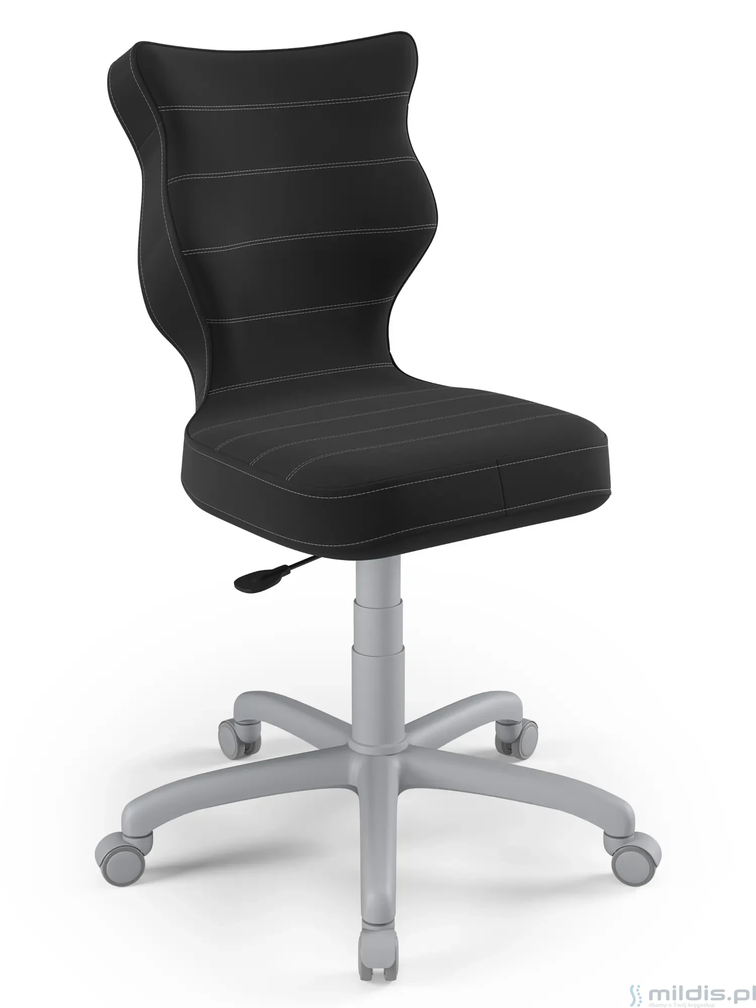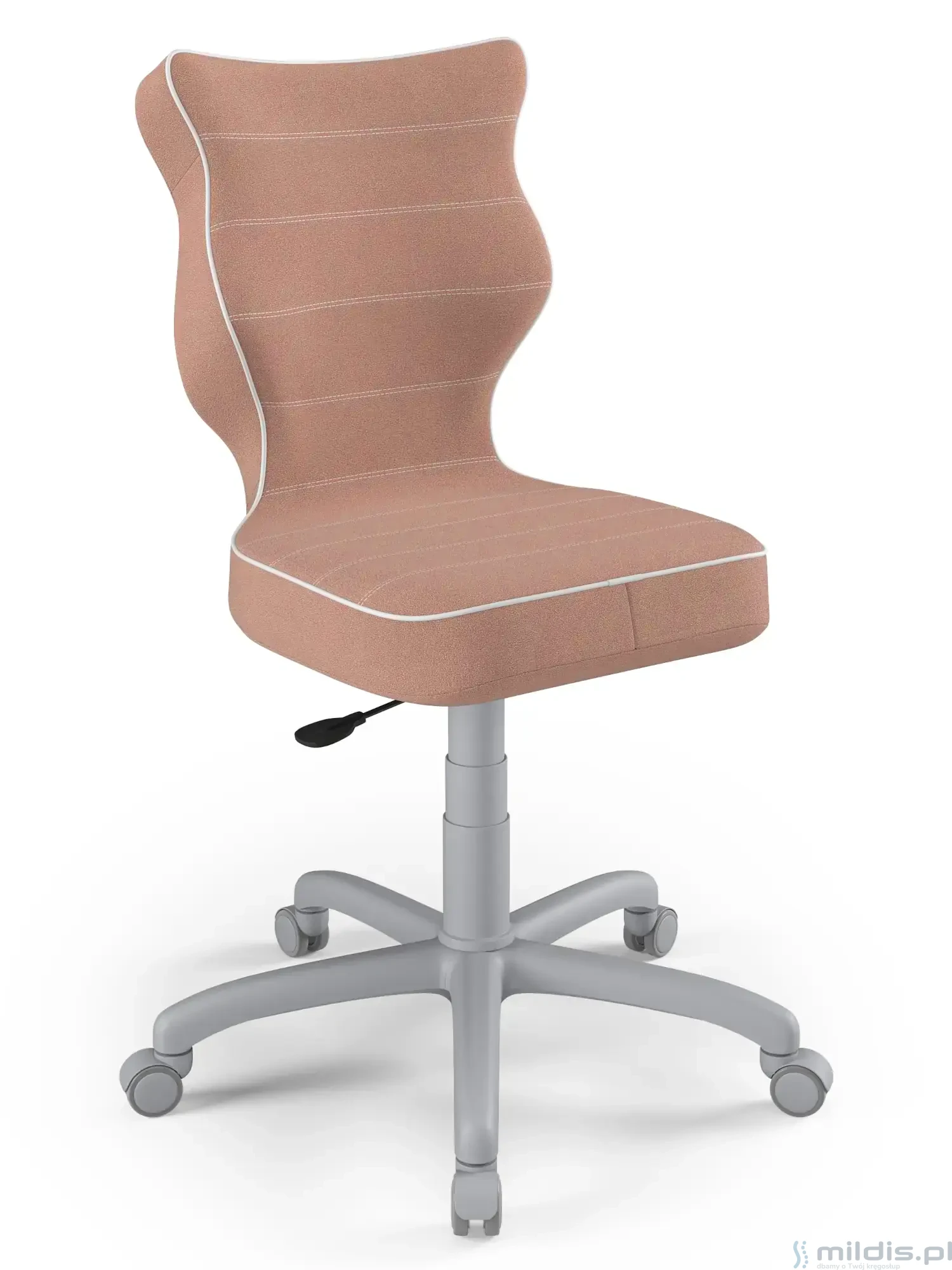 Obrotowe krzesło dla młodzieży Entelo Petit Grey to prosta, niezawodna konstrukcja z bardzo mądrze zaprojektowanym kształtem oparcia. Dzięki swym kształtom dobrze wspiera plecy u starszych dzieci zapobiegając nadmiernemu pochylaniu się, garbieniu i przechylaniu na boki podczas siedzenia.