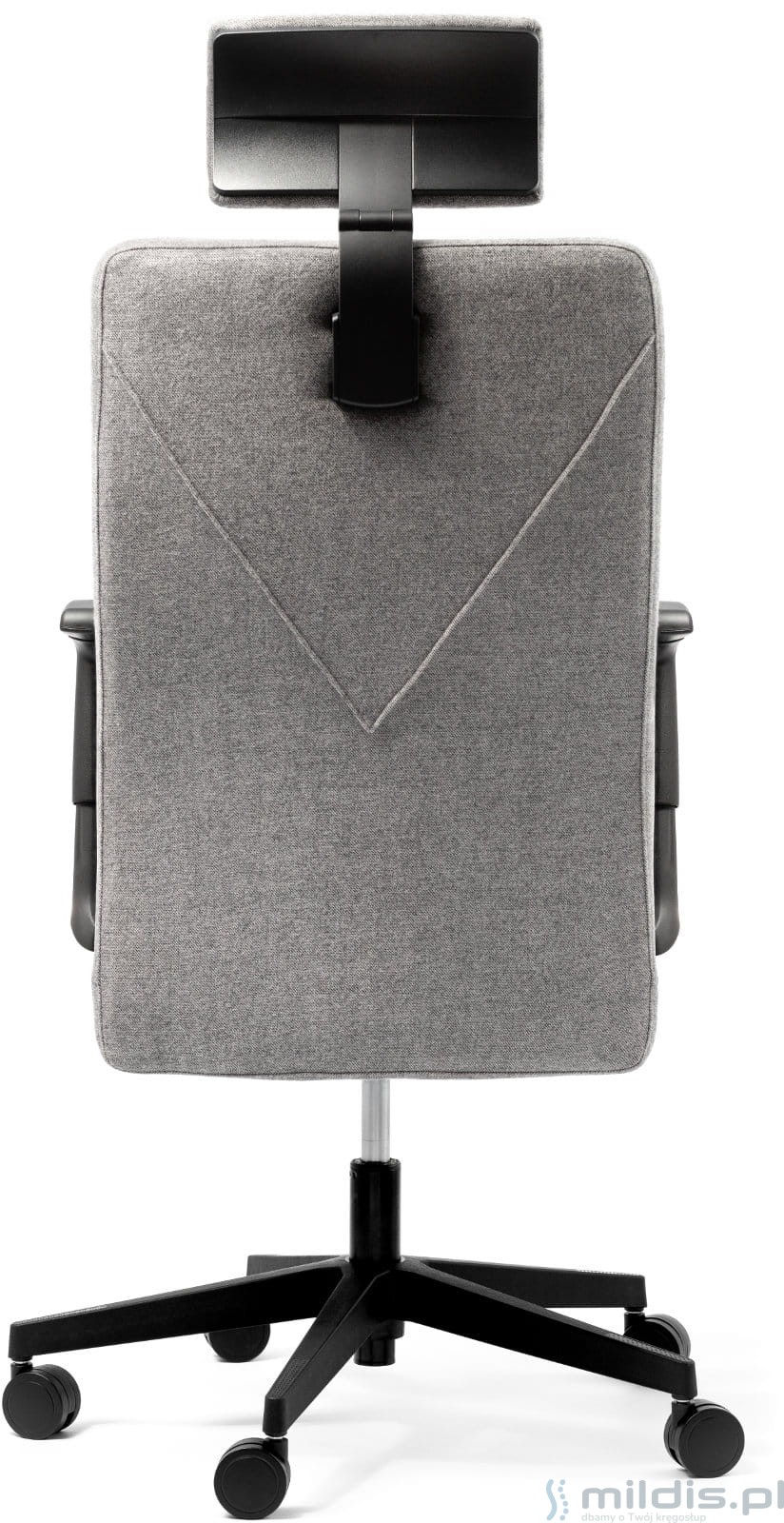 Oparcie z tyłu posiada przeszycie w kształcie litery V, dzięki czemu możliwe jest tapicerowanie w dwóch kolorach jednocześnie. (Chcąc zamówić fotel dwukolorowy, drugi kolor należy podać w uwagach.)
