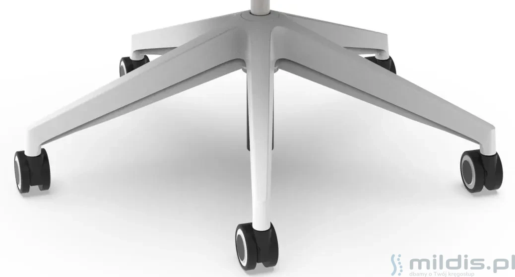 Wysoka, efektowana podstawa jezdna (baza, nogi krzesła) wykonana z mocnego tworzywa, kolor biały - model SW7H.