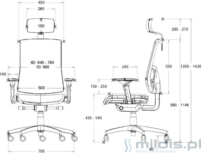 Fotele ergonomiczne Skill polecamy osobom o wzroście ok. 165 - 195 cm.