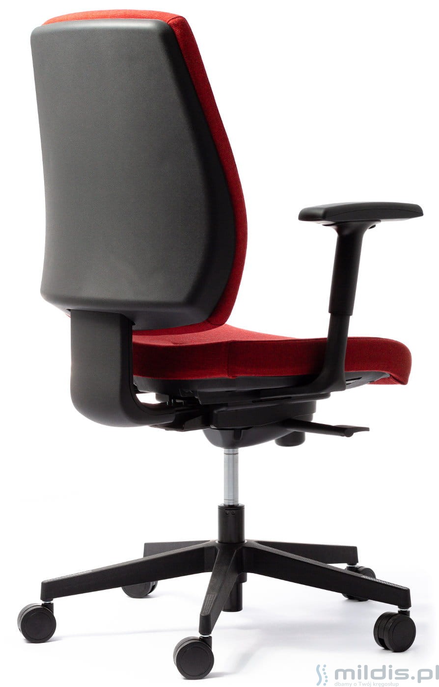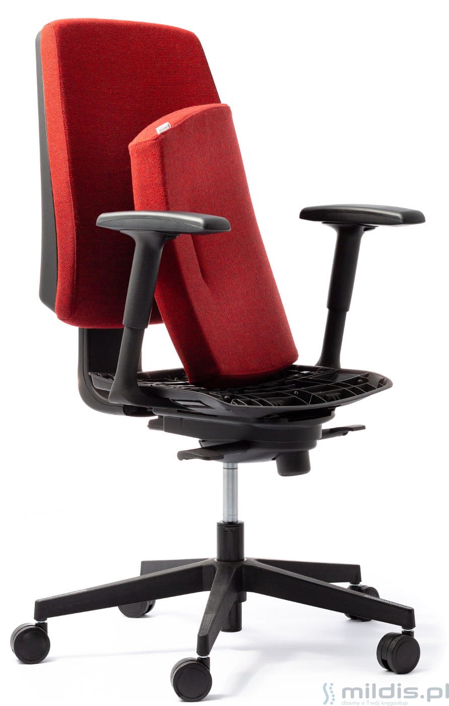 Oparcie tapicerowane o dosyć masywnej budowie. Najszersze jest na wysokości odcinka lędźwiowego kręgosłupa. Dlatego podpiera dolną część pleców na całej szerokości nawet u osób o większej wadze. Dzięki wyraźnemu wyprofilowaniu lędźwiowemu pomaga zmniejszyć obciążenia działające na kręgosłup w trakcie siedzenia. Konstrukcja wewnętrzna oparcia wykonana jest z mocnego tworzywa. Wypełnienie stanowi pianka trudnopalna o grubości 4 cm i gęstości 42 kg/m3.