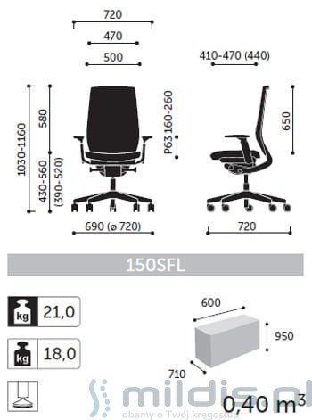 - Posiada ramę z tworzywa sztucznego (poliamid) wzmocnionego włóknem szklanym. Tapicerowane jest siatką materiałową umożliwiającą swobodny przepływ powietrza i dobrą wentylację pleców.