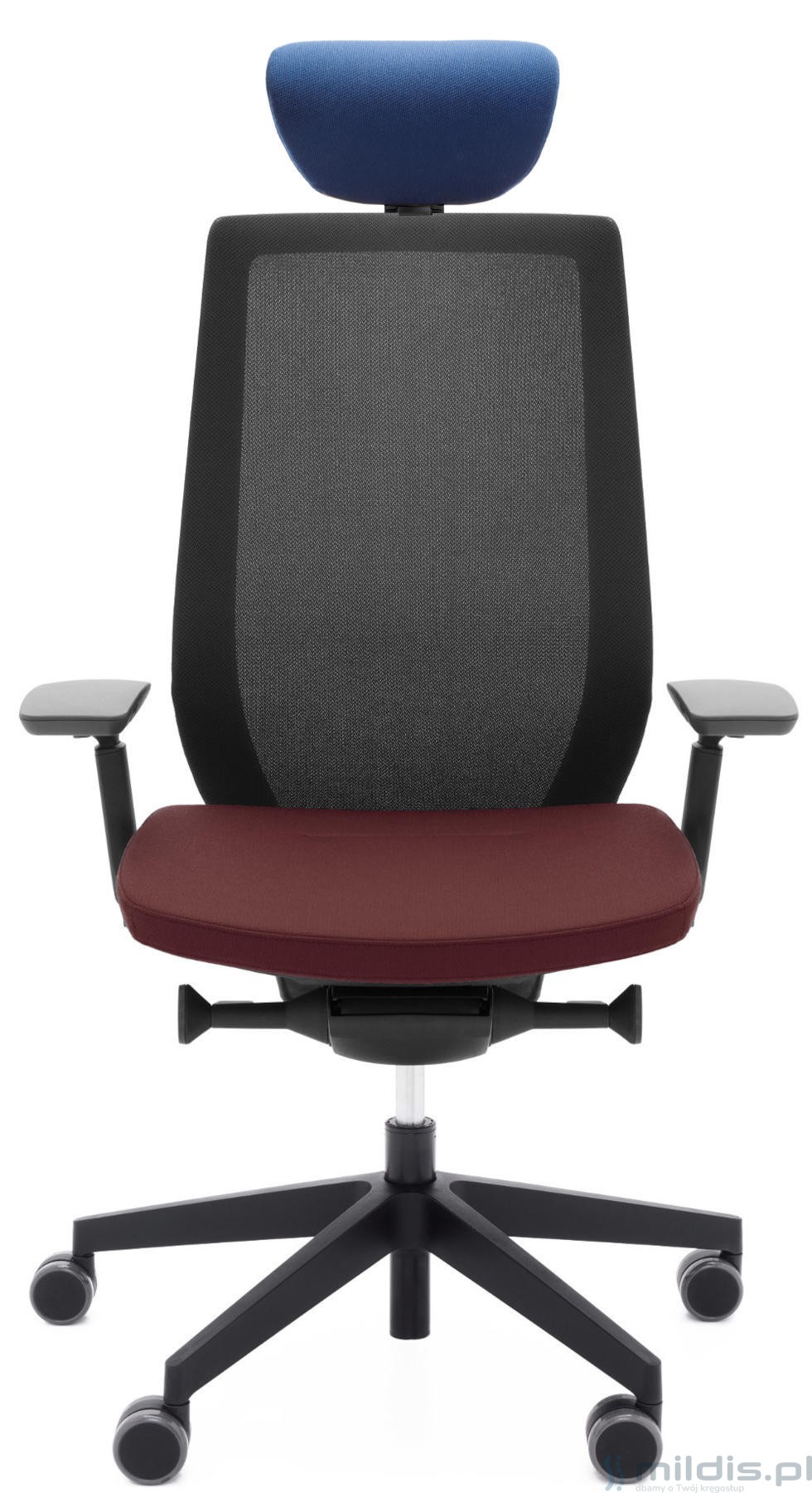 Regulowany zagłówek: tapicerowany materiałem - jak siedzisko lub siatką - jak oparcie (opcja dodatkowo płatna).