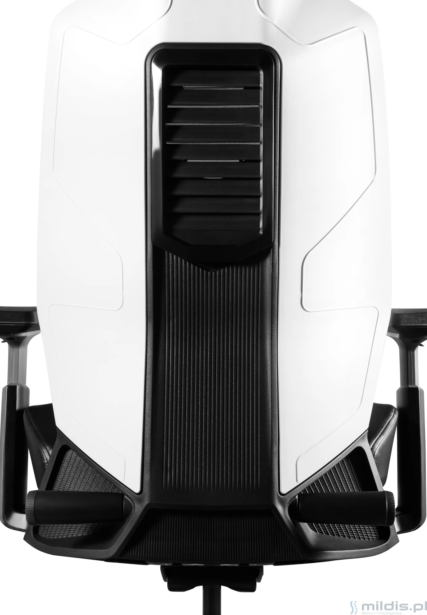 Wysokie, profilowane oparcie tapicerowane z przodu wytrzymałą siatką. Tył oparcia o bardzo oryginalnych, gamingowych kształtach. Pokrywa oparcia wykonana jest z tworzywa w kolorze białym lub czarnym. Niezwykłą zaletą fotela Ronin jest możliwość zamontowania w oparciu wentylatora komputerowego o średni z zakresu 80 - 120 mm. Wentylator montuje się pod pokrywą. Po zamontowaniu jest niewidoczny.