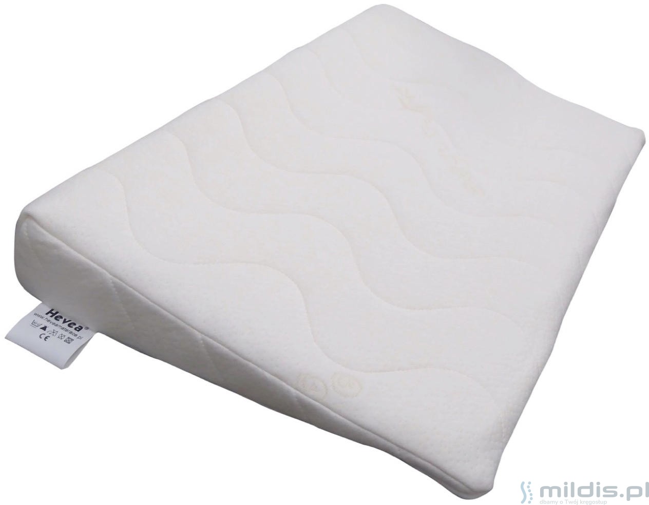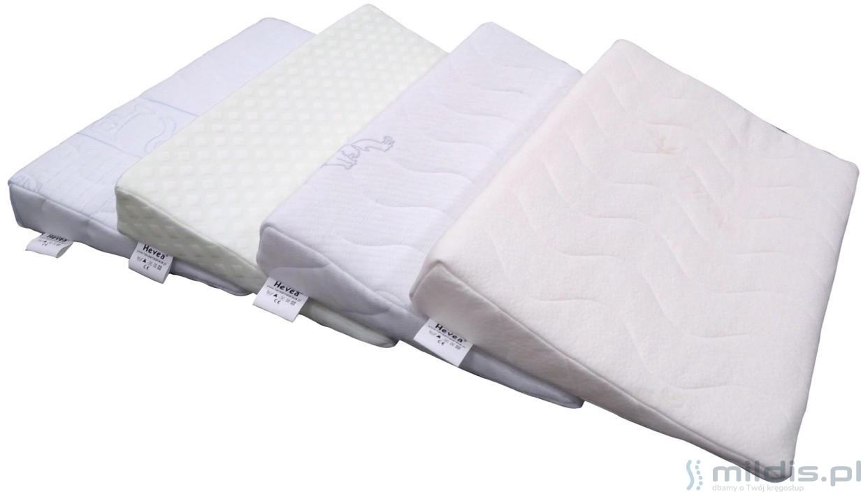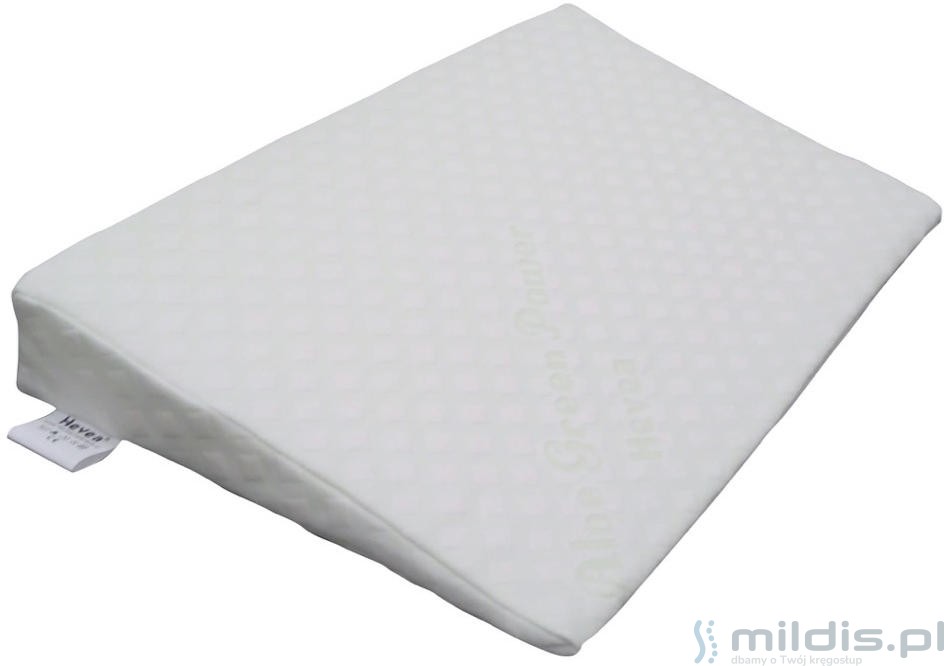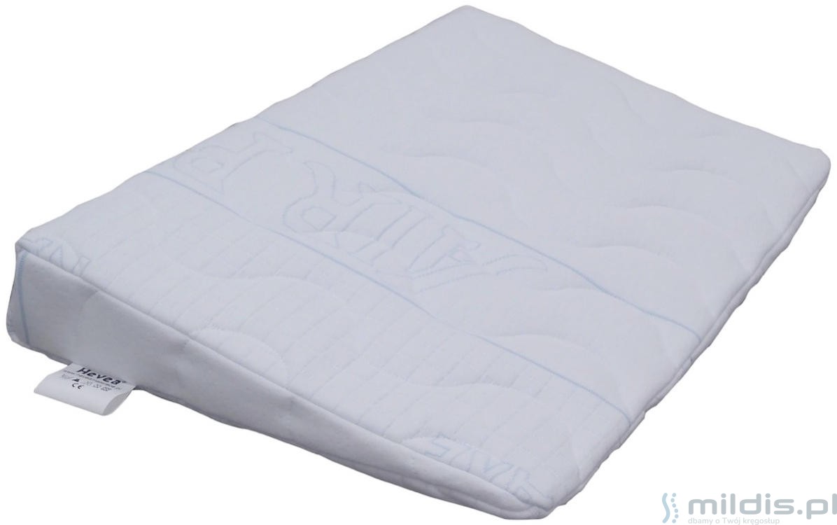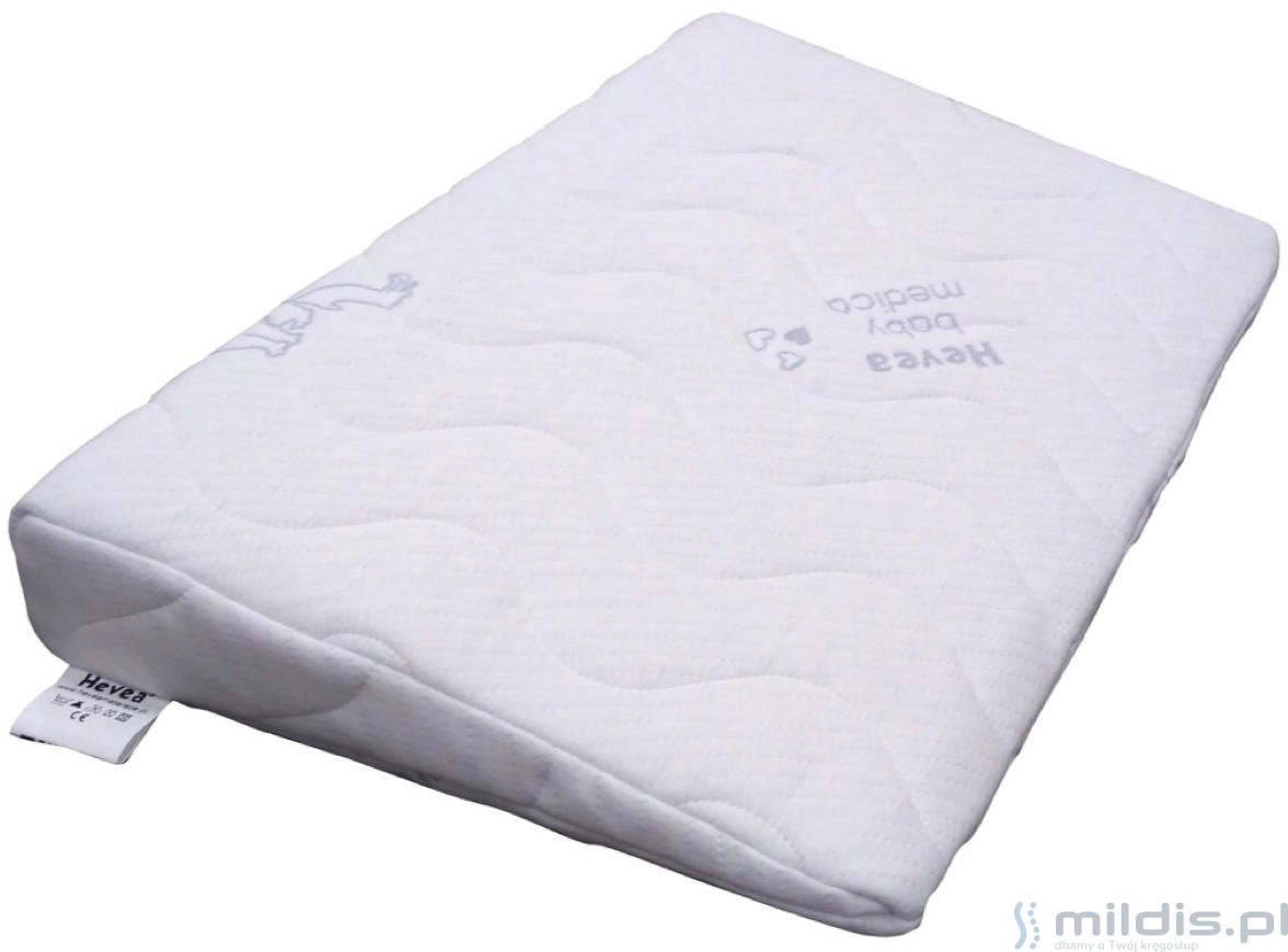 Poduszka klin marki Hevea przeznaczona jest dla najmłodszych dzieci. Stosuje się ją w celu zmniejszenia problemów z refluksem i tzw. ulewaniem u niemowląt i noworodków. Zmniejsza ryzyko zadławienia. Poduszka do łóżeczka w kształcie klina polecana jest też w czasie infekcji górnych dróg oddechowych u maluchów.