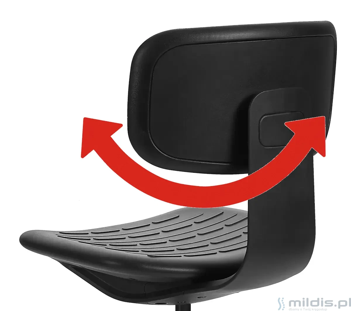 - Siedzisko i oparcie ma nakładki poliuretanowe w kolorze czarnym.