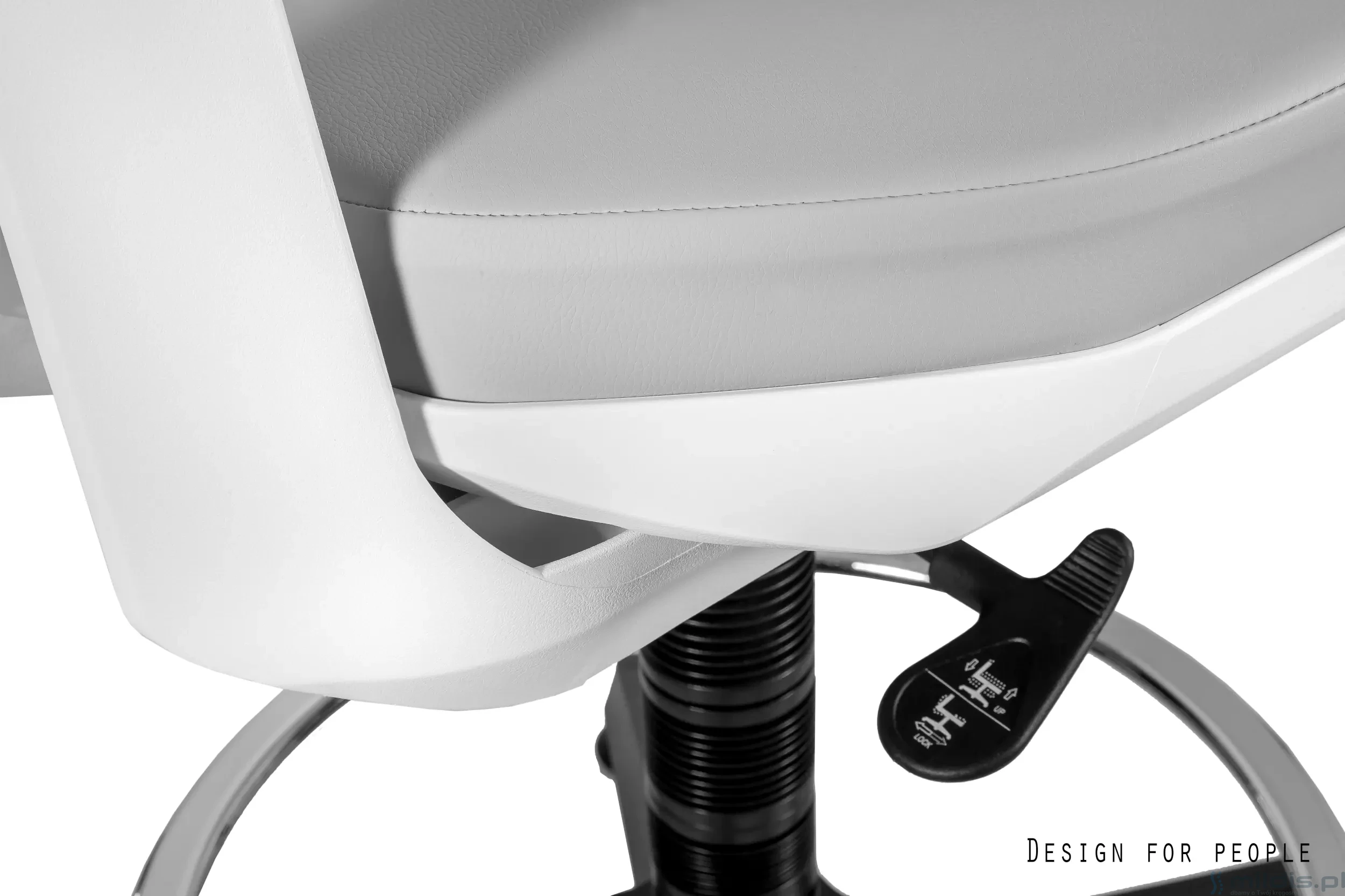 Unique Kaden to krzesło laboratoryjne posiadające wysoko podnoszone siedzisko i regulowany podnóżek. Dla łatwego czyszczenia i dezynfekcji Kaden ma siedzenie pokryte ekoskórą, a oparcie bez tapicerki - powleczone polipropylenem. Ten model sprawdzi się przy wysokich blatach w laboratorium oraz innych stanowiskach placówek medycznych, gdzie niezbędne jest wysokie krzesło obrotowe. Z uwagi na swoją budowę Unique Kaden będzie dobrym rozwiązaniem również na innych stanowiskach pracy, w których należy zachować podwyższony poziom higieny oraz tam, gdzie jest ryzyko częstego zabrudzenia, zapylenia krzesła.