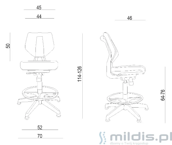 Wymiary krzesła laboratoryjnego Kaden
