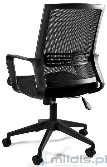 Oparcie zbudowane jest na mocnym stelażu, zintegrowane z podłokietnikami. Pokryte jest przewiewną i wytrzymałą siatką zapewniającą bardzo dobrą wentylację pleców. Komfort siedzenia poprawia podparcie lędźwiowe zamontowane w oparciu krzesła.