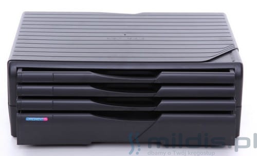 - Posiada 4 szuflady mieszczące kartki w rozmiarze A4, w tym jedną szufladę wysoką oraz trzy niskie.