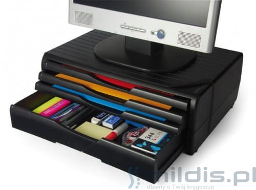 Organizer z szufladami na biurko włoskiej marki Exponent pomoże zachować porządek na biurku i stworzy więcej wolnej przestrzeni do pracy. Organizer może służyć również jako podstawka pod monitor komputera lub pod drukarkę.