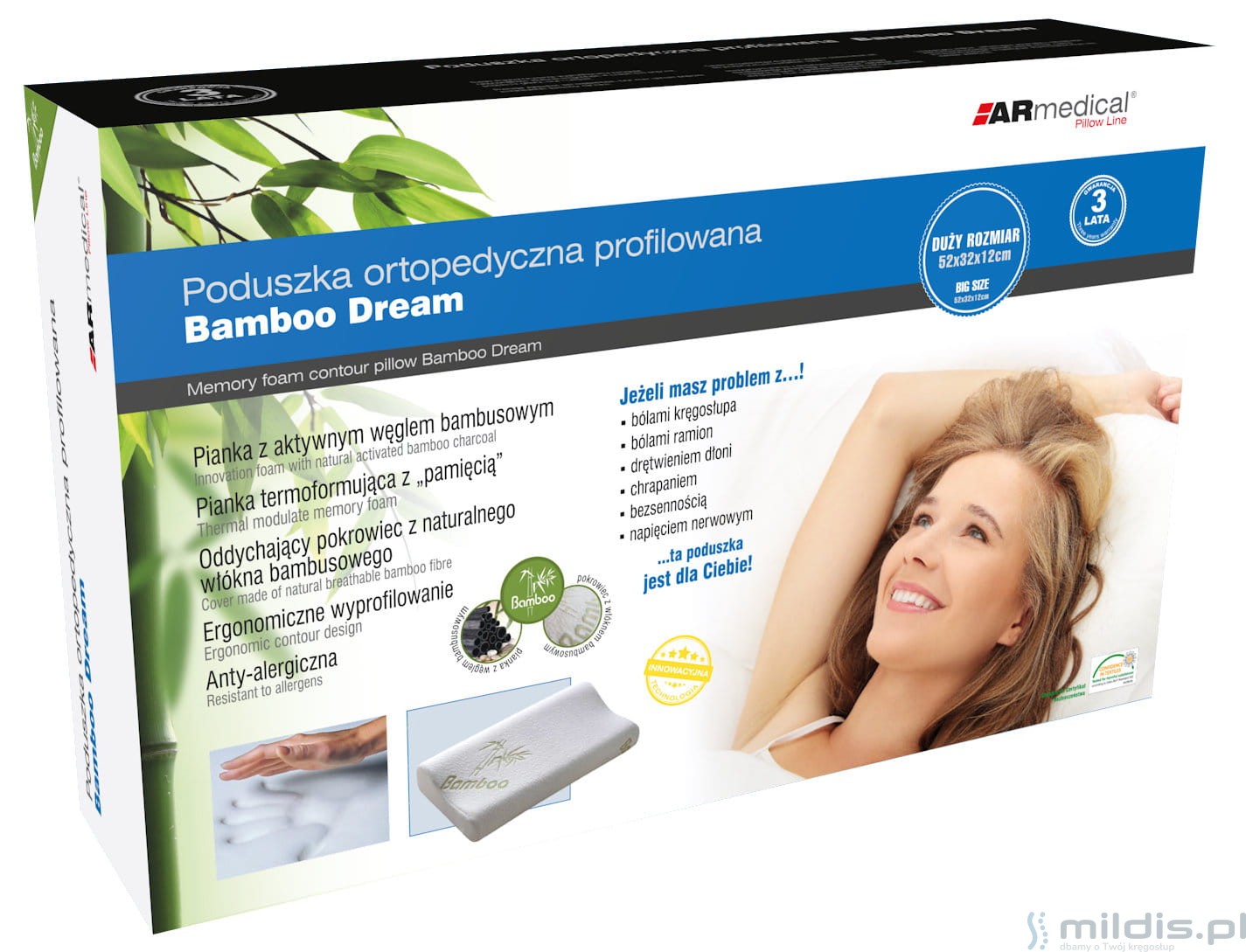 Wyjątkowa poduszka profilowana do spania polskiej marki ARmedical. Wyróżnia się nie tylko skutecznością w walce z bólami karku, ale również eleganckim i przyjemnym w dotyku pokrowcem z zawartością włókien bambusowych.
