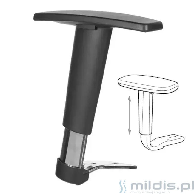 Podłokietniki Vario: regulacja "góra - dół" - zakres 70 mm, miękkie nakładki poliuretanowe. Szerokość pomiędzy podłokietnikami: 48 cm.