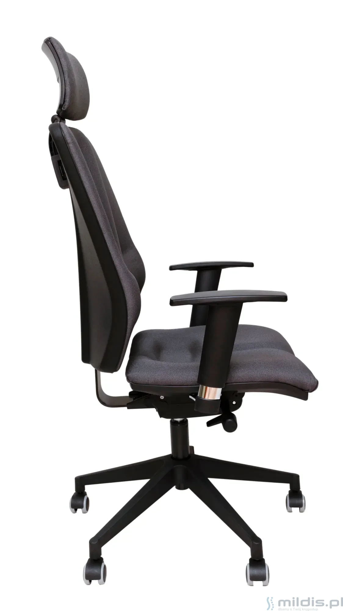 Podłokietnik 3D: regulacja "góra-dół" - zakres 80 mm, "przód - tył" (+/- 30 mm), nakładka obrotowa - obrót po 15° na stronę (do środka lub na zewnątrz). Szerokość pomiędzy podłokietnikami: 42 cm.