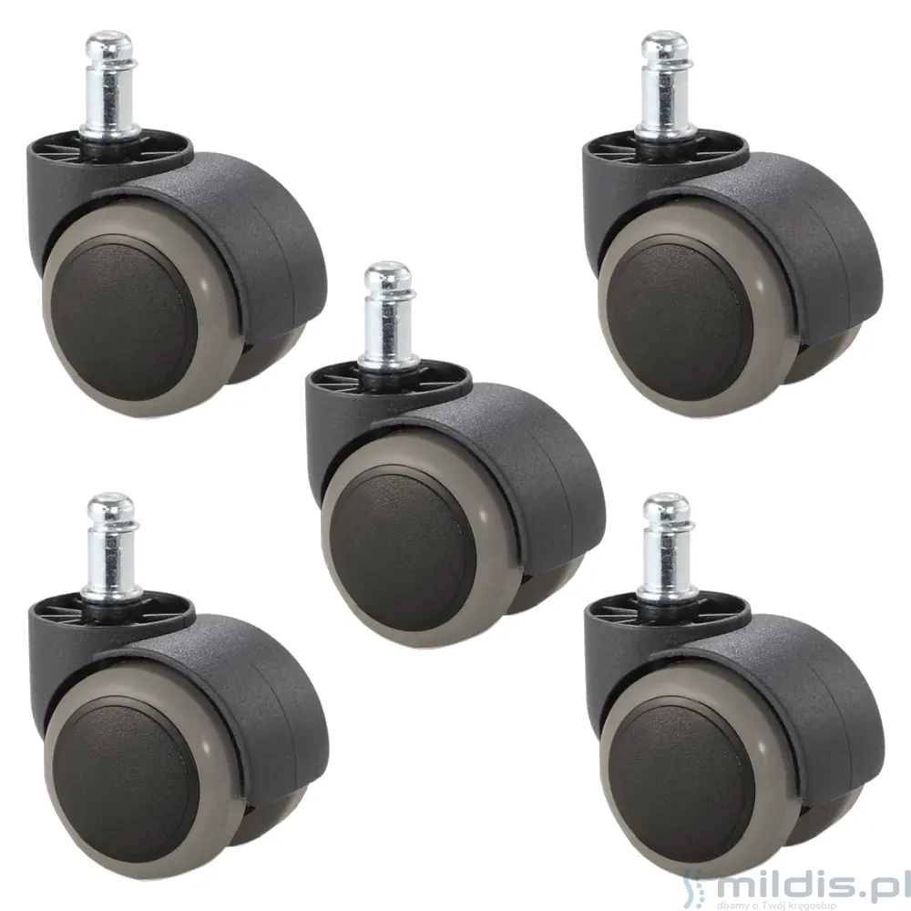 - Zestaw zawiera 5 kółek gumowanych do foteli - standardowo do pięcioramiennych podstaw foteli i krzeseł obrotowych.