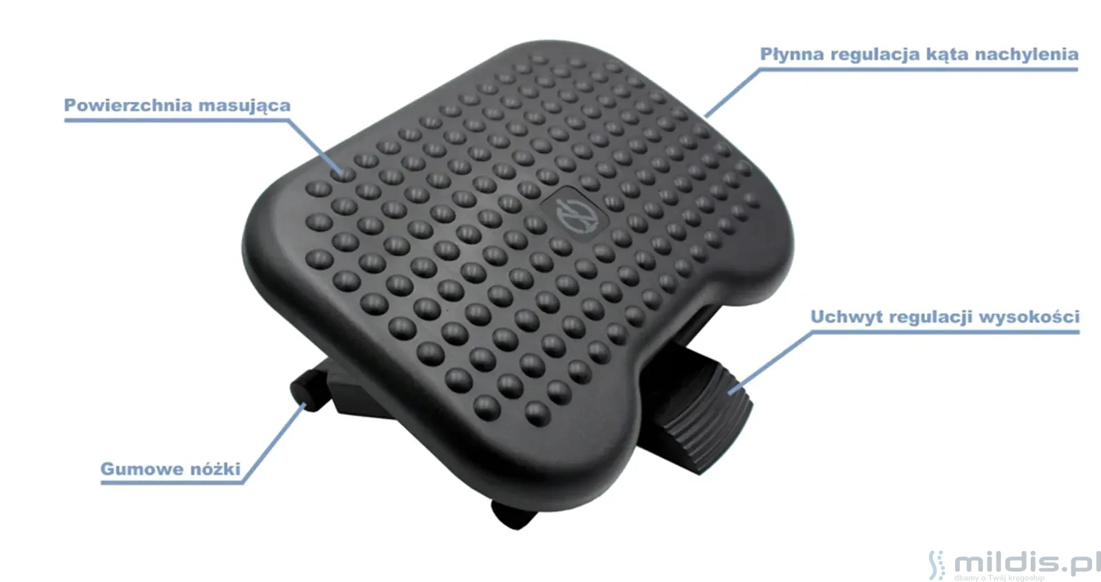 Podnóżek do biurka VeroTech 70003 to najbardziej popularny model tego producenta. Jest to jeden z najlepszych podnóżków na rynku, mimo niewygórowanej ceny. Posiada wszystkie funkcje najczęściej pożądane przez użytkowników, takie jak: płynna regulacja kąta pochylenia, intuicyjna, 3-stopniowa regulacja wysokości, antypoślizgowe nóżki oraz platforma z masującymi wypustkami.