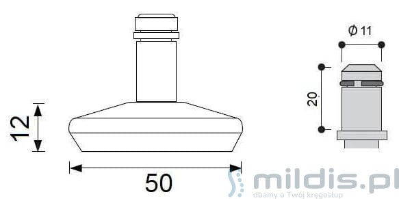 - Wysokość stopki bez trzpienia: 12 mm.